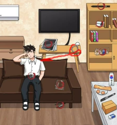 3、点击旁边的鞋柜得到一把螺丝刀,然后拖到平板电脑上,得到一张透明的垫纸板;