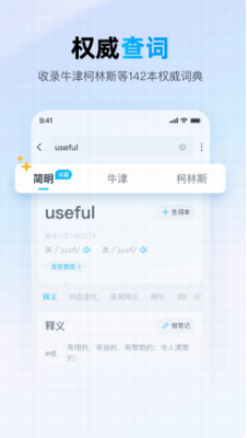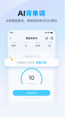 覆盖高中、四六级、考研、雅思、托福身份,支持个性化定制,一键同步学习计划,听说读写专项练习,智能背单词,提高记忆效率。