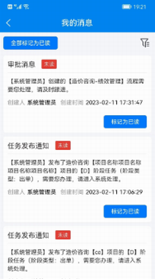 进入到我的消息主页中就能让用户查看到各种项目审批的通知消息内容