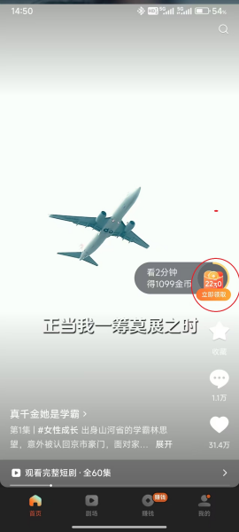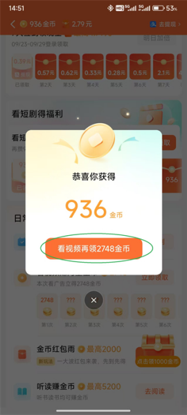 5、领取后,也可以通过点击“看视频”来再次获得金币。