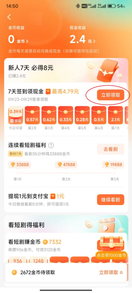 2、点击屏幕右侧的“立即领取”。