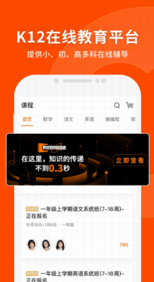 《猿辅导app官方免费下载》是一款功能强大实用且专门针对小学、初中、高中生打造的作业辅导和在线教育的的手机教育软件,软件拥有一线名师在线授课、班主任1对1同步答疑辅导的功能,这里老师有名校背景、资深教龄,无论你在哪都能选名师,还支持每节课自主换老师,允许用户选择喜欢听的,讲课有趣的老师,同时软件提供了各个年级以及科目的视频课程,有需要的用户可以进行选择性在线学习,每天打开视频课程就能跟着名师来学习重要的知识点,还支持把精品课程分享给同学,达到一起学习、共同成长的目的,并且软件里面的课程支持课后回放,即使错过了上课时间还能接着学习,还提供了专门的辅导复习题,让学生学完便可得到强化和巩固,并且这里面的课程精准匹配各地教材版本,满足用户学习需求。
