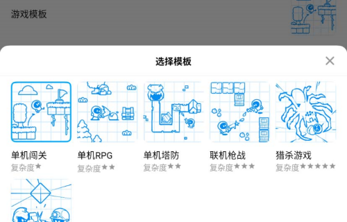 先设定好游戏名称,然后根据你自己的构思和喜好,在页面上选择适合的游戏模板。无论是紧张刺激的冒险解谜,还是轻松愉快的休闲益智,亦或是策略烧脑的战争模拟,创游世界都为你提供了丰富的选择。