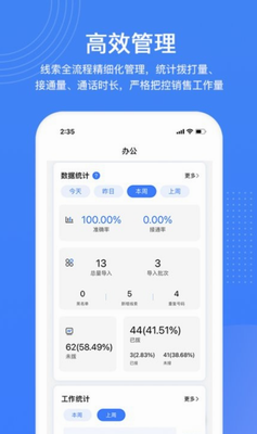 5、线索全流程管理,对线索、意向、成交等拨打跟进状态进行精细化统计管理,建立企业数据库,方便多次挖掘,增加成交客户。